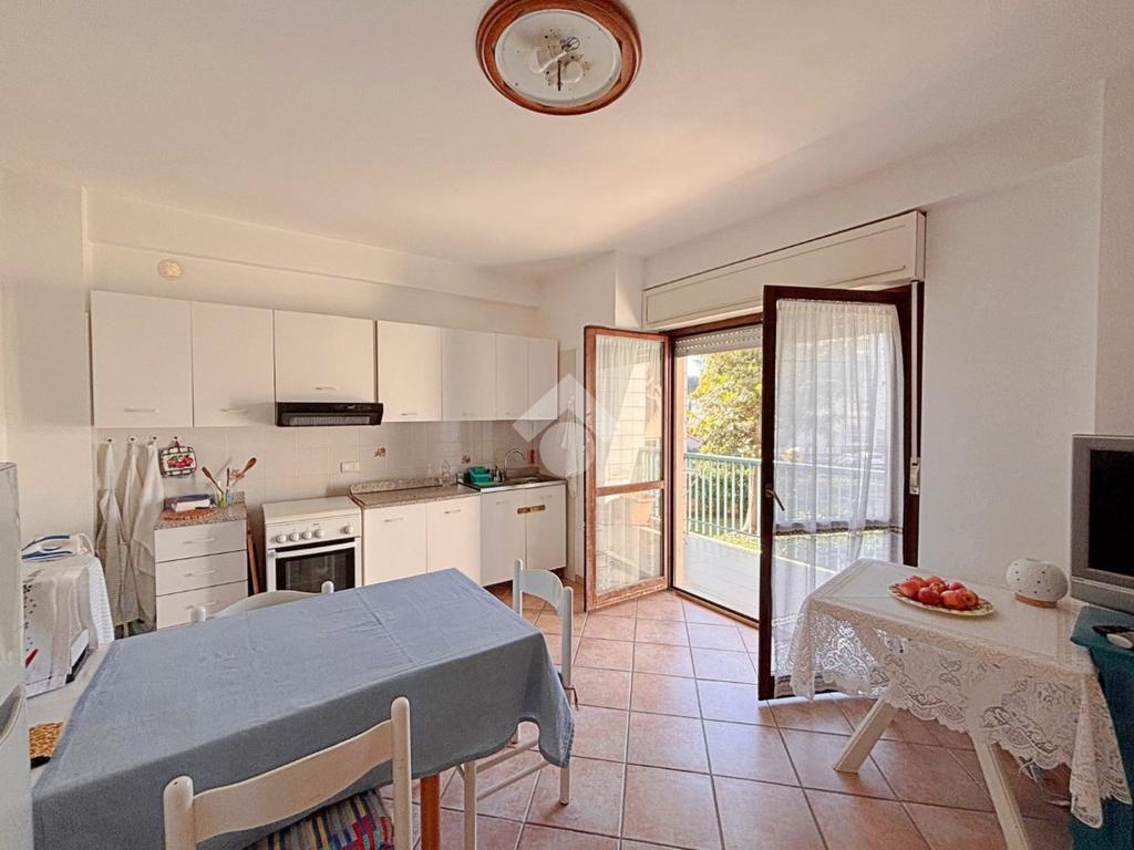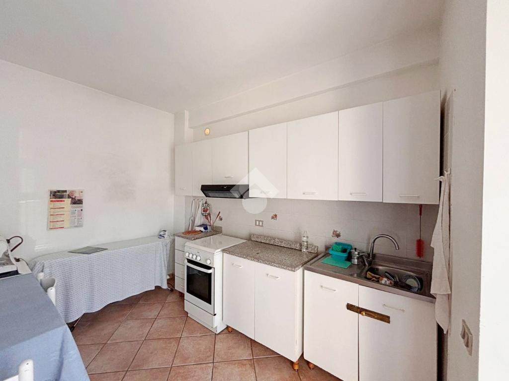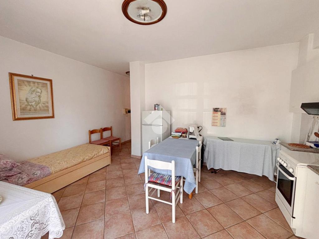Entrando in casa, si viene subito accolti dal soggiorno con angolo cottura, ambiente arioso e ben proporzionato ideale per creare una zona pranzo e relax in un unico spazio funzionale.