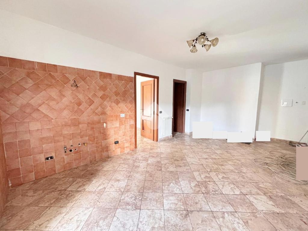 Entrando in casa, si viene subito accolti dal soggiorno con angolo cottura, ambiente arioso e ben proporzionato ideale per creare una zona pranzo e relax in un unico spazio funzionale.