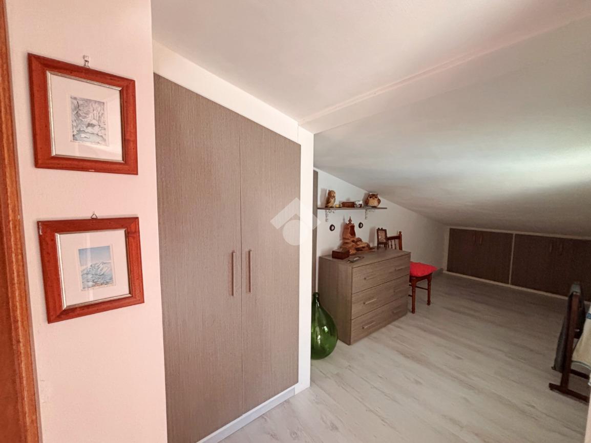 Salendo al secondo piano mansardato si accede a un grande open space che ospita una camera matrimoniale ben organizzata, un pratico angolo cabina armadio, un secondo bagno con doccia e un terrazzo privato che garantisce ulteriore privacy e vivibilità.