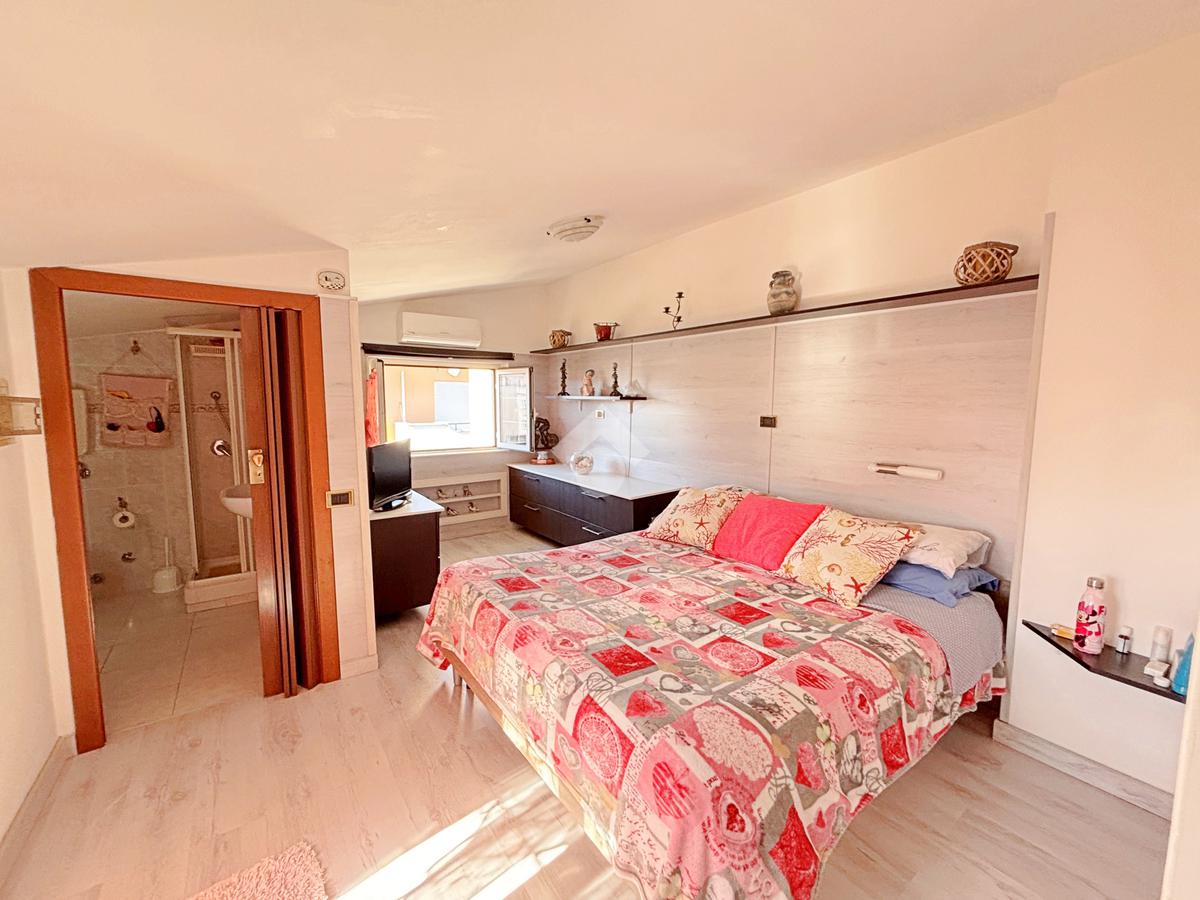 APPARTAMENTO IN VILLA DI 100 MQ DISPOSTO SU 2 LIVELLI CON ACCESSO DA PIANO TERRA PIANO:SOGGIORNO,CUCINA,CAMERETTA,BAGNO,2 SECONDO:OPEN SPACE CON CAMERA MATRIMONIALE,BAGNO,TERRAZZO. 100 MT DAL MARE-ZONA COMPLETAMENTE SERVITA. POSSIBILITA’ DI RICAVARE TERZA CAMERA.