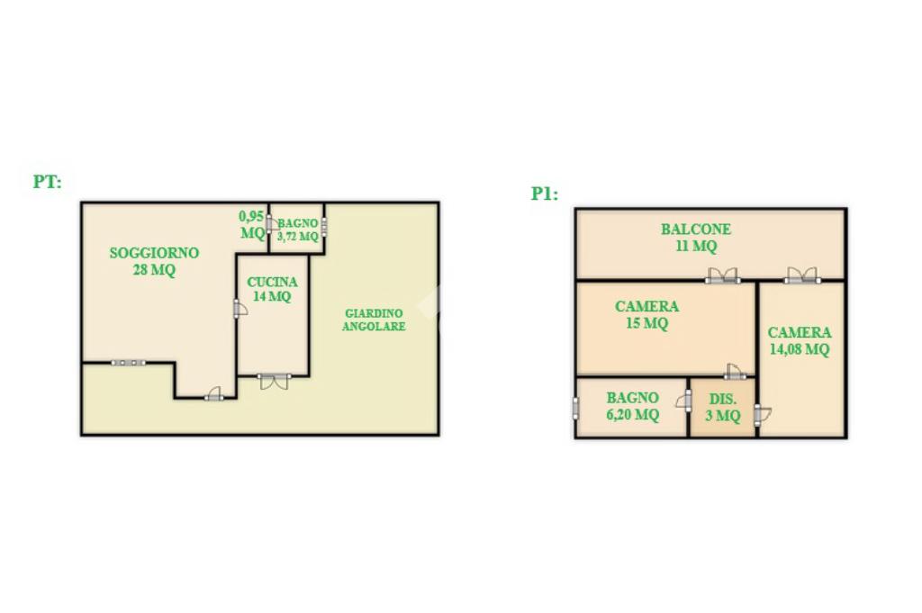 Al piano primo si sviluppa la zona notte composta da due camere da letto, entrambe con accesso diretto al balcone, e bagno con vasca.