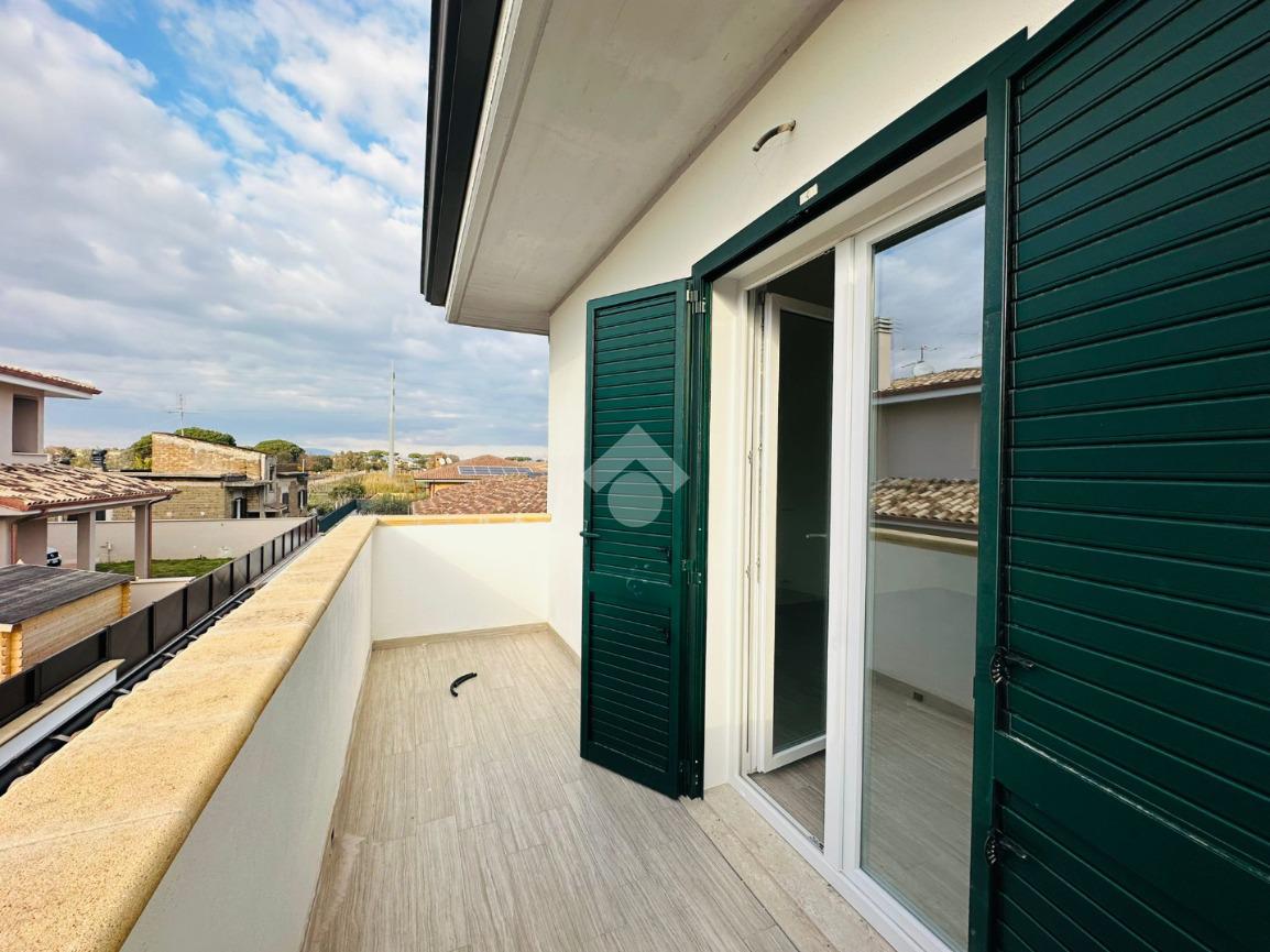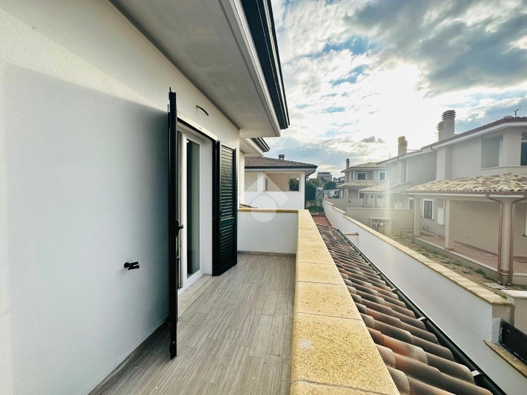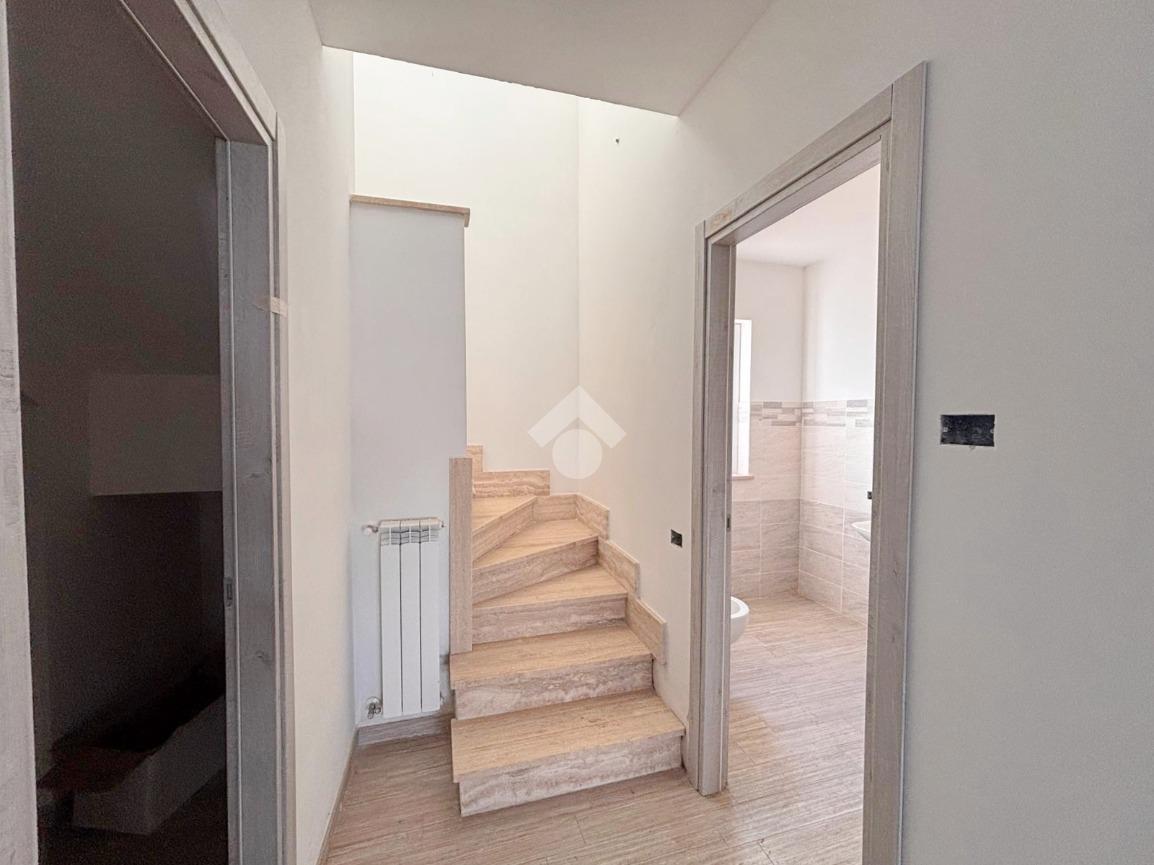 Salendo al piano superiore si raggiunge la zona notte, dove il disimpegno precede l'accesso per due camere da letto, entrambe dotate di porta finestra che conduce ai due balconi privati, proseguendo troviamo il bagno completo di doccia, rifinito con materiali moderni e pensato per un uso quotidiano pratico e confortevole.