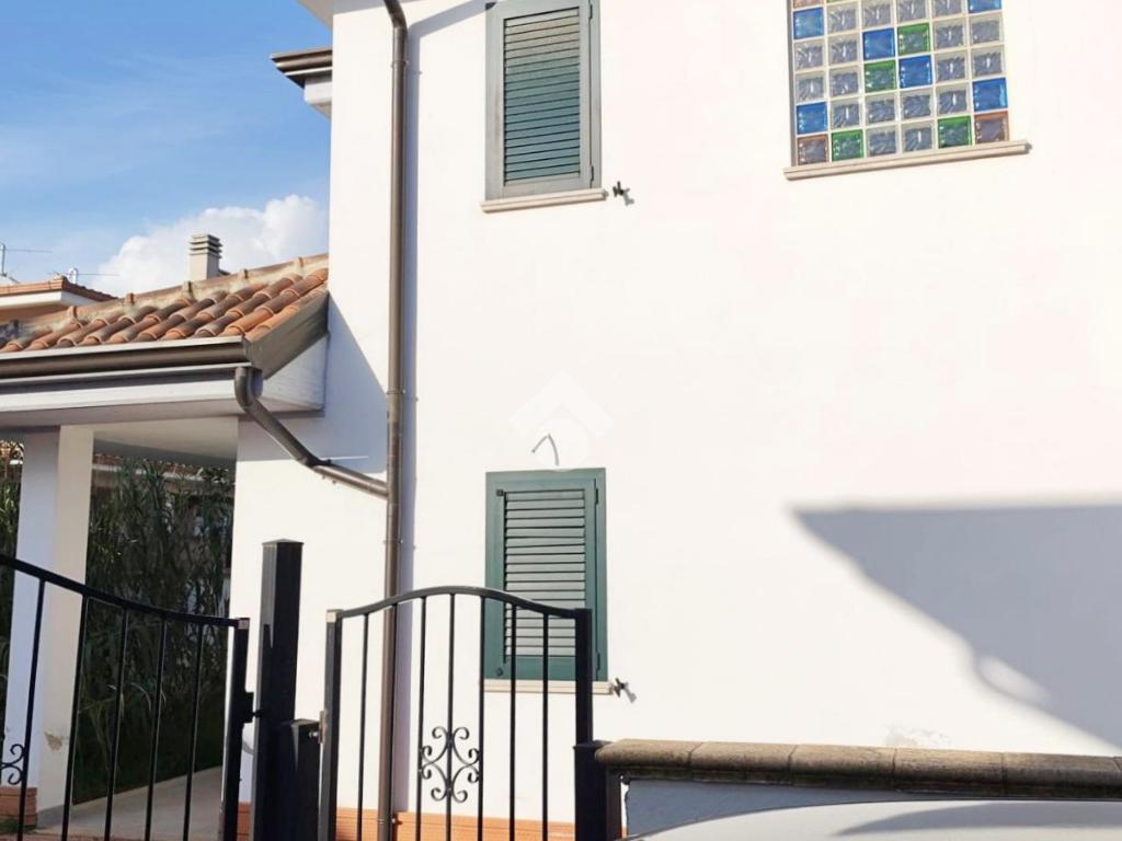 All’esterno, la villa è circondata da un giardino angolare di 200 mq con portico che avvolge la casa su tre lati,spazio che offre molte possibilità : un’area pranzo all’aperto, un angolo relax per la stagione estiva. L’accesso è garantito sia da un cancello pedonale sia da un cancello carrabile, che permette di parcheggiare comodamente all’interno della proprietà.